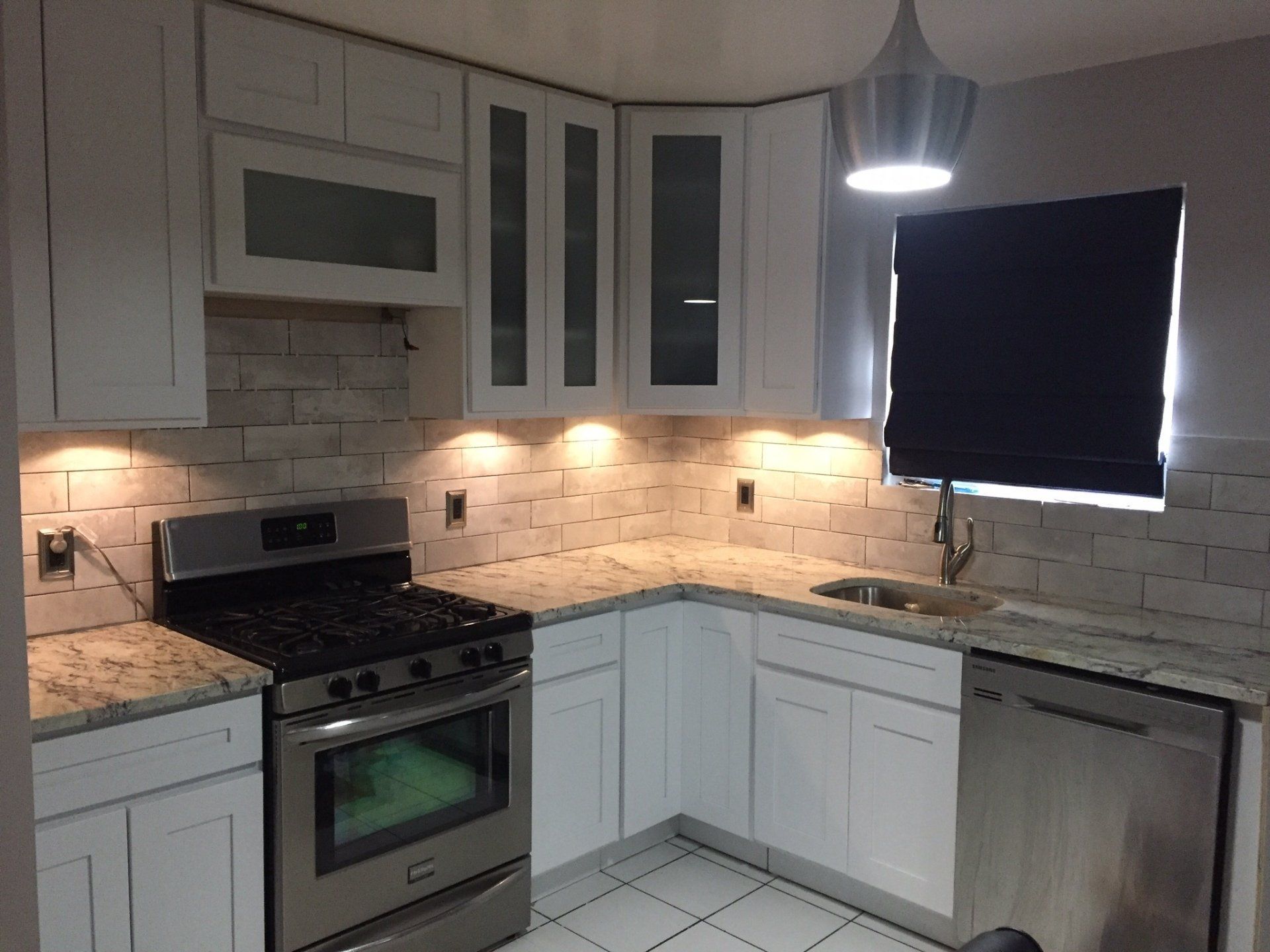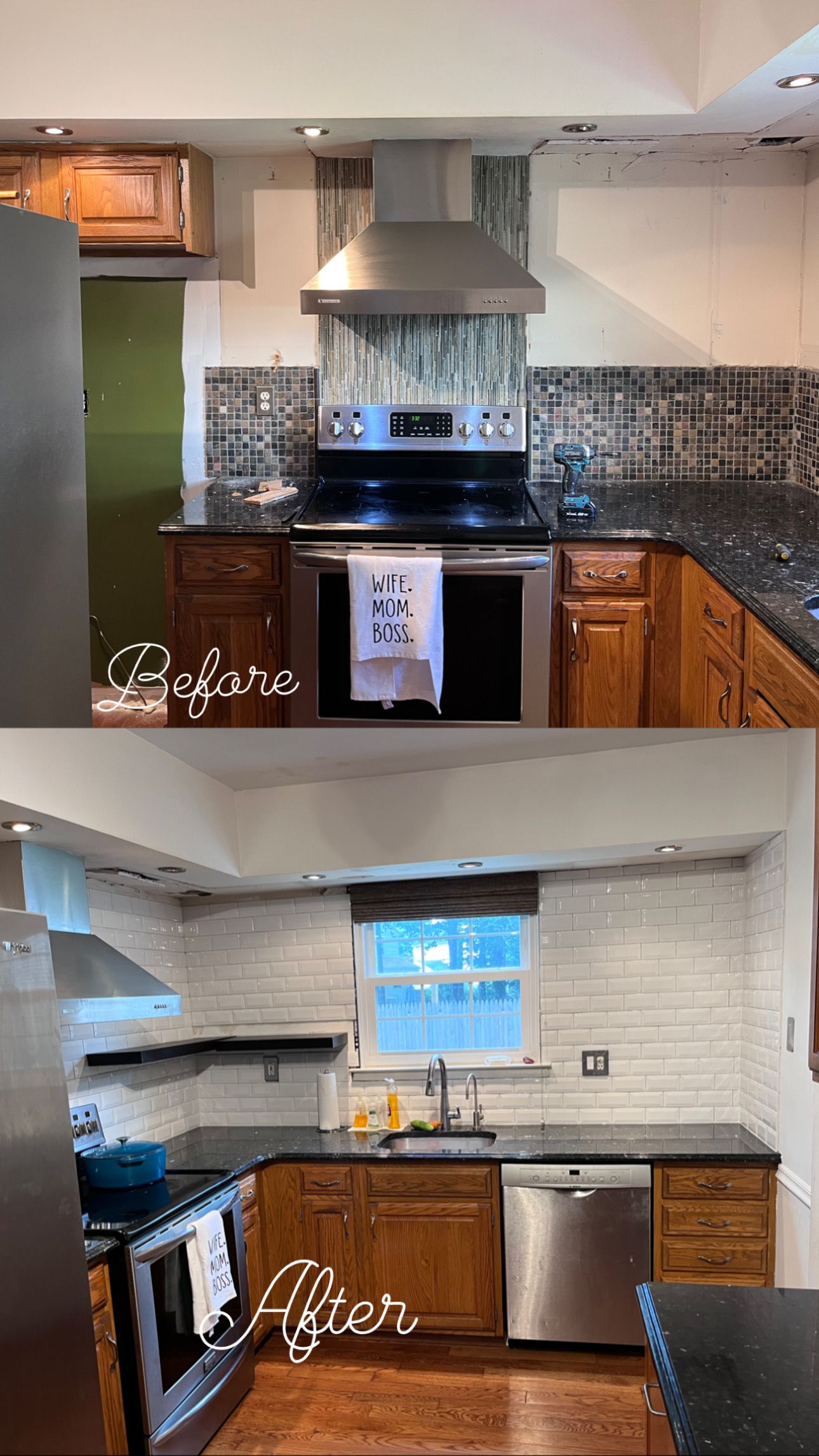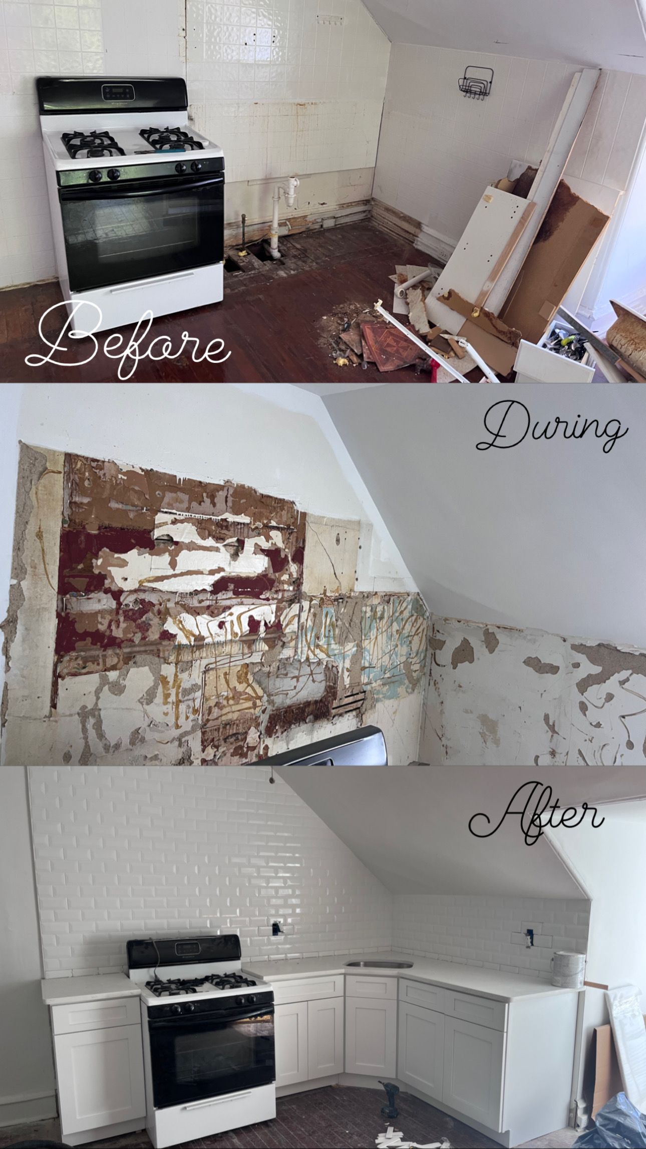 Kitchen: demolition, Sheetrock replacements, cabinet replacements and backsplash